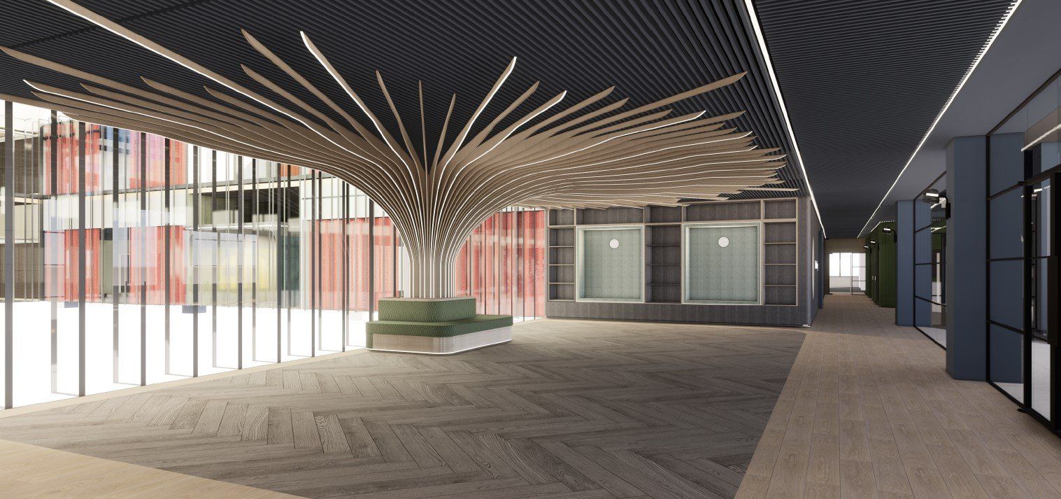 The key structural alterations included new sky-fold walls to maximise space in event rooms, new glass sliding doors spanning long distances and a barista lounge to supply an open break out area for the office.