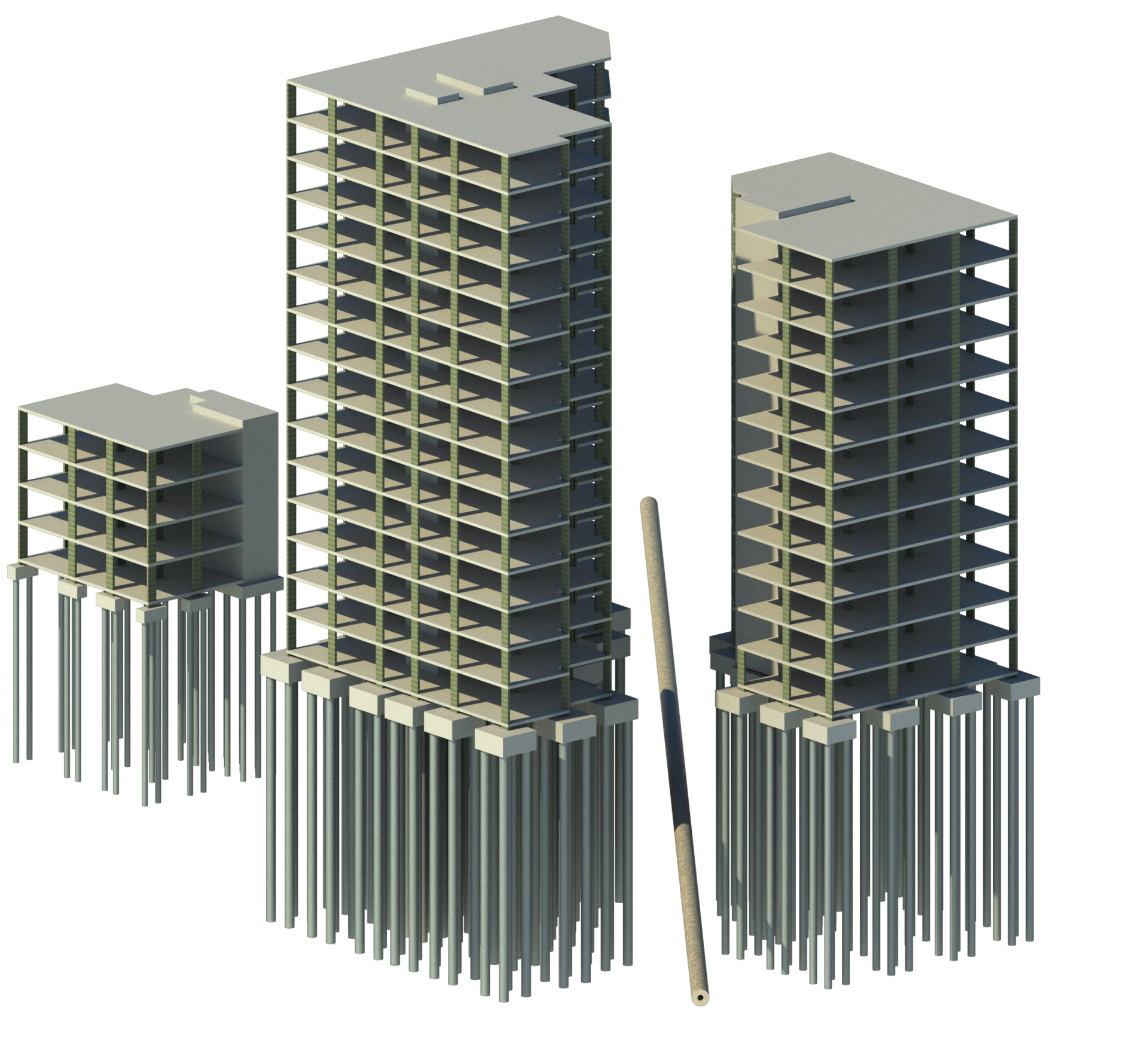 A repetitive grid structure in line with the architectural proposals allowed for an efficient 250 thick reinforced concrete flat slab with no transfer structures.